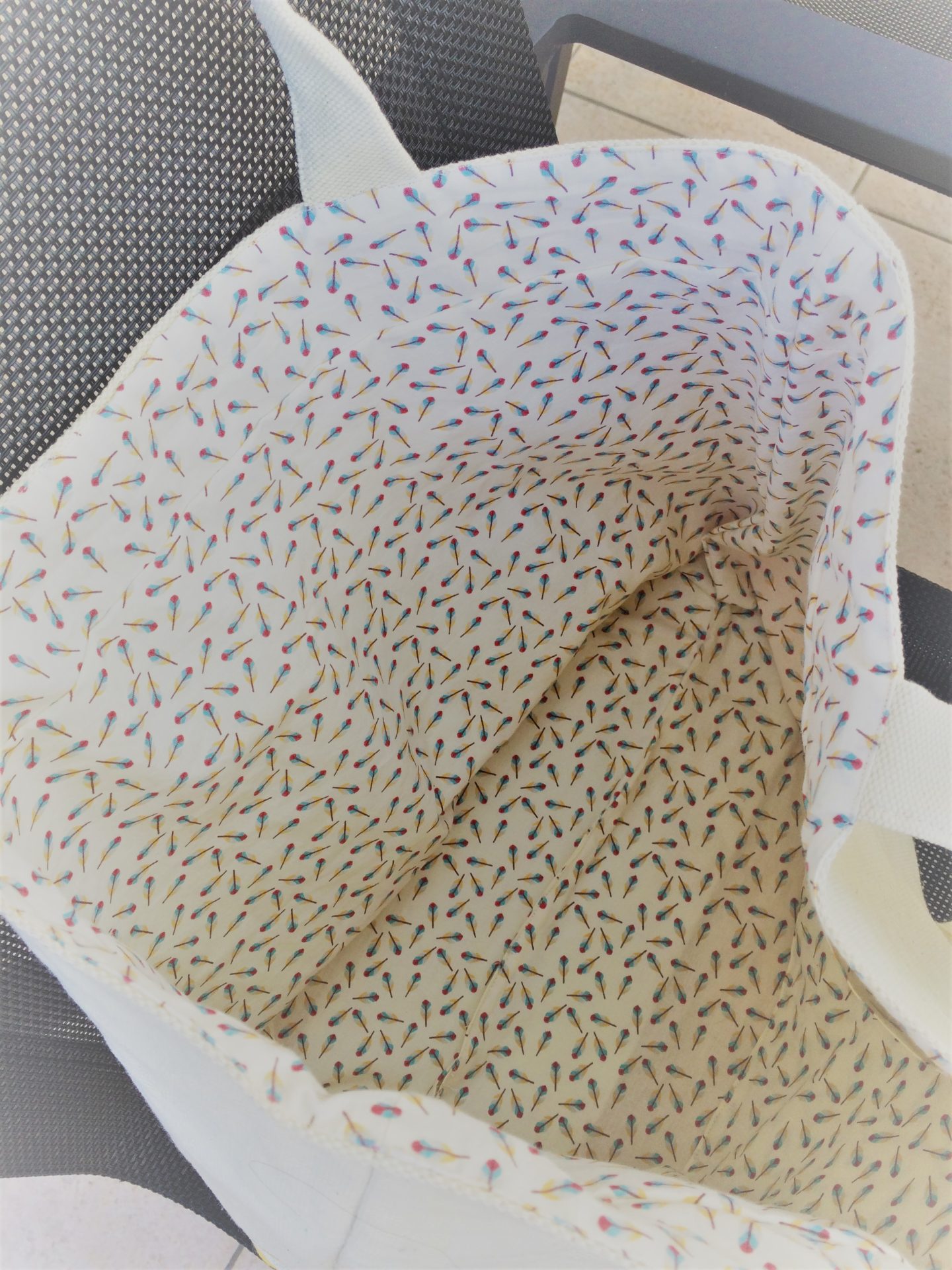 Si c’était à refaire je pense que je ferai le sac un peu plus large.. il me semble bien pour deux serviettes de plage mais pas plus !